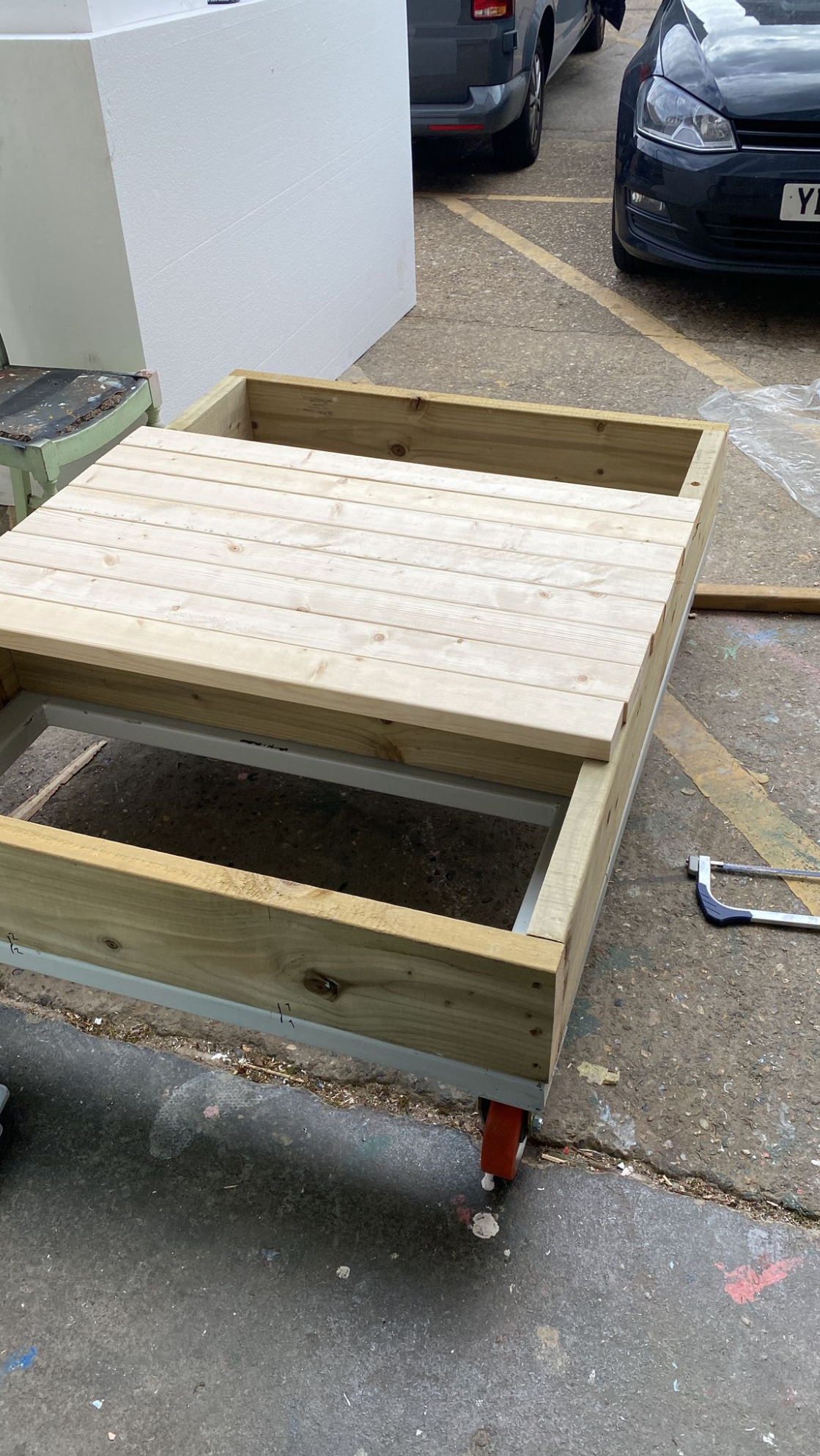 Towering at 3 metres, the Obelisk was first created out of Plywood in our Bermondsey workshop and shipped to Bracknell in two-parts. The whole was meshed, sculpted, stamped, sprayed and dry-brushed in a day. We love how it turned out and is one of our favourite pieces.